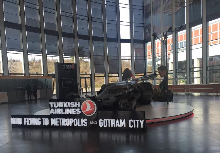 عرضت الخطوط الجوية التركية سيارة باتمان الشهيرة "باتموبيل" التي تزأر خلال فيلم المغامرات المرتقب "باتمان ضد سوبرمان: فجر العدالة" لشركة "أفلام وارنر براذرز"، وذلك في جناحها خلال مشاركتها في معرض بورصة برلين الدولي للسياحة والسفر "آي تي بي" الذي أقيم في العاصمة الألمانية برلين في الفترة من 9-13 مارس 2016.