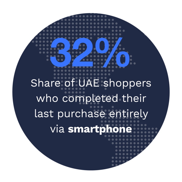 يُعدّ الميول القوي للمستهلكين في الإمارات العربية المتحدة تجاه التسوق الذي يعتمد على الهواتف المتحركة أحد أبرز المزايا التي تجعل سوق التجارة الإلكترونية في دولة الإمارات فريداً من نوعه على الساحة العالمية.