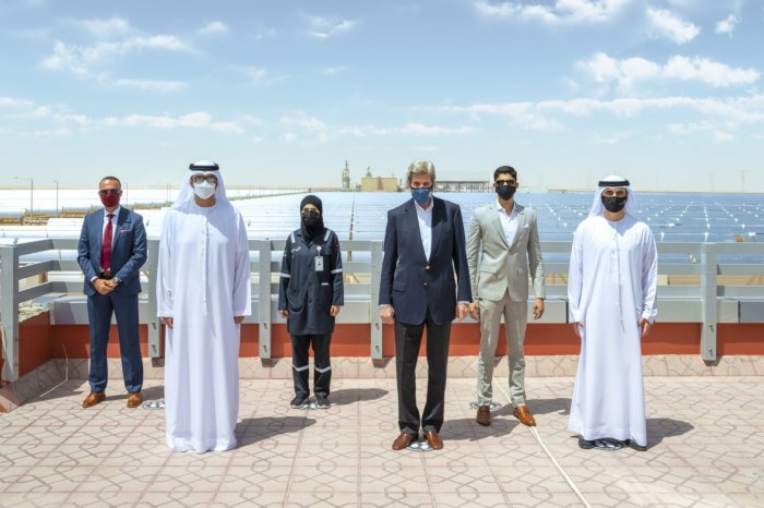 من جانبه، أعرب جون كيري عن سعادته بزيارته إلى الإمارات، مشيراً إلى أنها جزء من الجهود المبذولة لإنجاح مؤتمر الأمم المتحدة بشأن تغير المناخ (المؤتمر السادس والعشرون للأطراف في اتفاقية الأمم المتحدة الإطارية بشأن تغير المناخ) و«معالجة أزمة المناخ بالجدية التي تتطلبها». وأضاف: «يسعدني اليوم زيارة أكبر محطة مستقلة للطاقة الشمسية في العالم، (نور أبوظبي)، كما أسعدني الاستماع إلى ما قاله الدكتور الجابر حول خطة الإمارات لقيادة العالم على مستوى التكنولوجيا الحديثة من أجل التخفيف من الانبعاثات الكربونية. وكان من اللافت لي أن أجد الإمارات العربية المتحدة تحاول قيادة العديد من الدول الأخرى في البحث عن تكنولوجيا جديدة للتصدي إلى أزمة التغير المناخي والعمل على بناء اقتصاد تنافسي ومعرفي عبر تشجيع العلوم والابتكار». وتابع: «نحن نواجه تحدياً عالمياً هائلاً متمثلاً في التغير المناخي. سنلتقي اليوم بعدد من قادة المنطقة لتبادل الأفكار حول أفضل ما يمكن فعله من أجل رفع طموحاتنا خلال مؤتمر غلاسكو الذي يعد أهم مؤتمر بعد اتفاقية باريس».
