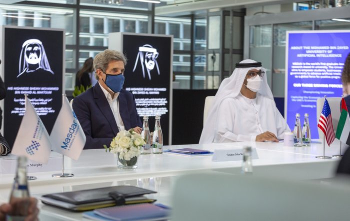 وزار كيري، المقر الرئيس للوكالة الدولية للطاقة المتجددة (آيرينا)، ومدينة مصدر، التي تعد من أهم المساهمين في توسع محفظة الإمارات من مصادر الطاقة المتجددة بنسبة 400% على مدى السنوات العشر الماضية. كما زار جامعة محمد بن زايد للذكاء الاصطناعي، التي تعد أول جامعة في العالم تقدم مناهج مخصصة لدعم حلول الاستدامة من خلال الابتكار في مجال الذكاء الاصطناعي.