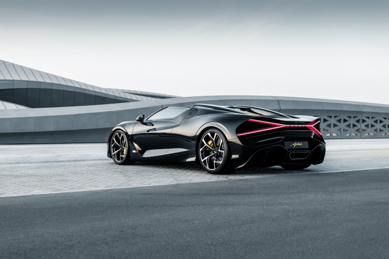 تضم W16 Mistral نسخة من محرّك W16 المتميّز الذي يُولِّد قوّة قدرها 1,600 حصان، وهي توفر أداءً لا يشبه شيئاً لدى أي سيارة أخرى بسقف مفتوح. وتتألّق السيارة عبر تصميمها وهندستها، حيث إنها متطوّرة جداً بهذين المجالَين. فالمقصورة الأحادية الحالية لا تتميّز فقط بكونها مقطوعة ببساطة فوق أعمدة A لإتاحة الحصول على التصميم الجديد بالسقف المفتوح، بل بأنها قد أعيدت هندستها وصياغتها لابتكار مظهر جانبي مصقول أكثر دون المساوَمة على الأداء.