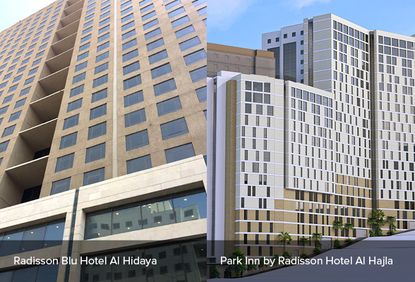 وستقوم ريزيدور بتشغيل برجين باسم العلامة التجارية راديسون بلو، حيث سيتم افتتاحهما على مرحلتين. ويضم أول برج 588 غرفة سيتم افتتاحها في مايو 2018. أما البرج الثاني، فيضم 663 غرفة وسيتم افتتاحه في مايو 2019. وسيصبح فندق راديسون بلو الهداية وجهة للزوَار بسبب موقعه الاستراتيجي في مجمع الهداية التجاري والذي تبلغ مساحته 14,000 متر مربع. من ناحية أخرى سيتم تشغیل باقي الأبراج الثمانية من قبل "ريزيدور"، لخدمة الحجاج في 3250 غرفة.