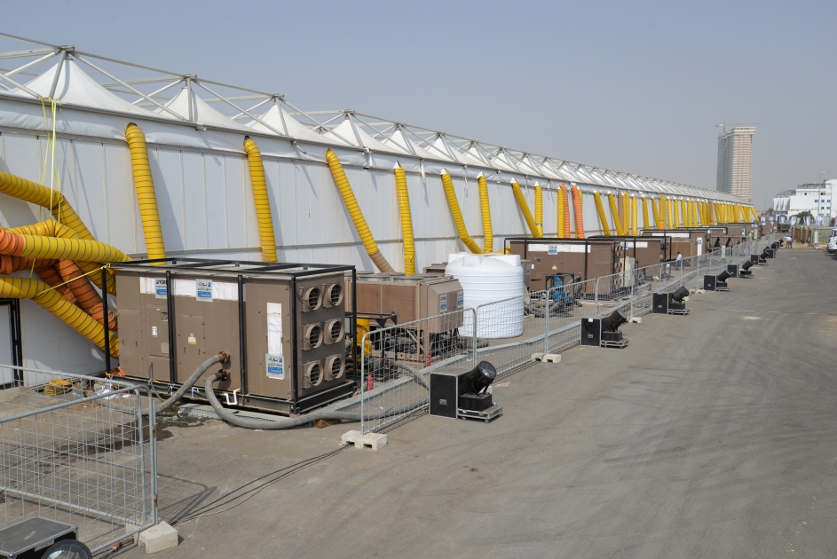 وقد حشدت الشركة طاقتها لتشغيل وصيانة نظام متكامل من التبريد والطاقة خلال أيام هذه الفعالية السنوية، والتي تستقبل 80 ألف زائرٍ يوميًا. وتحرص آل سالم جونسون كنترولز (يورك) على توفير أجواء ثابتة في درجة حرارة 24 درجة مئوية داخل الخيمة لينعم العارضون والزوار بالراحة أثناء تجوالهم في أروقة المعرض. ومن أجل تحقيق ذلك، قامت الشركة بتوريد وتركيب مبردات سعة 2000 طن تبريد، ووحدات معالجة الهواء سعة 2000 طن تبريد، إلى جانب توريد وتركيب مولدات الطاقة بقدرة 5900 كيلوفولط أمبير بما في ذلك الكابلات، وتوصيل حوالي 5000 متر من أنابيب الهواء من محطة التبريد إلى داخل الخيمة.