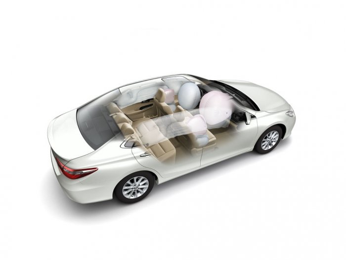 The new Toyota Camry continues Toyota’s comprehensive approach to safety to ensure peace of mind for customers, with the car coming equipped with an array of safety features designed to give them the confidence they need every time they take the car out for a spin. These include Enhanced Vehicle Stability Control (VSC), Traction Control (TRAC), Anti-lock Brake System (ABS), Electronic Brake-force Distribution (EBD), Brake Assist (BA), and more. For e.g, EBD control utilizes ABS hydraulic control to optimize the distribution of braking force between the front and rear wheels in accordance with driving conditions and vehicle load. In the case of Brake Assist, if the brake pedal is suddenly and rapidly depressed, it helps the driver with braking by generating a larger braking force. The new Camry also employs an advanced collision safety technology designed to not only ensure occupant safety but also to reduce pedestrian injuries. The body construction disperses collision energy through many frame components for effective energy absorption, thereby controlling cabin deformation to ensure survivable space after a collision. The front bumper absorber has been given a concave shape in order to reduce intrusion by controlling vehicle under-ride in a frontal collision. There are also a suite of convenience equipment that includes Rear View Monitor with Guide Lines, a Parking Assist System that alerts the driver when approaching obstacles in blind spots behind, and a Back Sonar System that uses ultrasonic sensors to detect obstacles behind the vehicle and informs the driver of the position and distance between the sensors and the obstacle using a buzzer. The new Camry features 6 SRS airbags, including driver’s airbag and knee airbag, front passenger airbag, front side airbags and full-length side curtain airbags that help reduce the collision energy imparted to occupants’ heads in the event of a side collision. In addition, it is provided with 3 point Emergency Locking Retractor seatbelts for the driver along with 3-point Automatic Locking Retractor for the front passenger and rear seats.