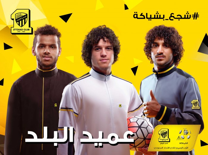 Mr. Moataz Al Andijani – Alshiaka Marketing Manager; has emphasized that the official Thobe of Al -Hilal & Al-Ittihad Clubs comes with specifications derived from sportswear, such as rubber sleeves, collars and supporting the Thobe with fabrics similar to those of the sports jerseys. We have also used colored stripes as well to reflect both clubs’ colors. As for the accessories we have made ones similar to clubs’ emblems, which are portable and can be attached or removed as needed. These designs provide enthusiasm and encouragement in an innovative fashion, yet adding elegance and freedom of expressing support to your favorite football club. As such the objective of our recently launched campaign throughout media and social media channels is realizing its goals, embodying the rejection of sports intolerance and supporting your club with elegance through the hash tag #شجع_بشياكة