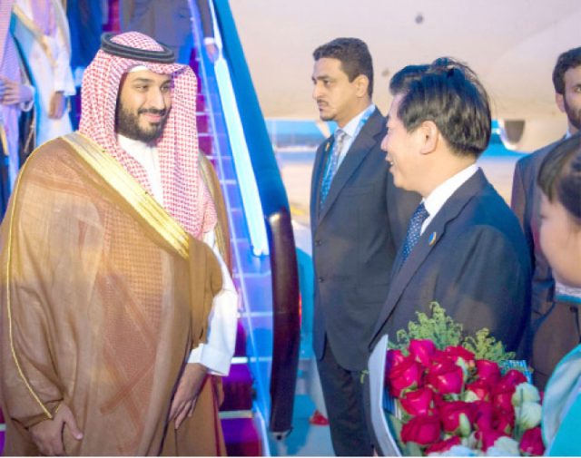 Prince Muhammad arrived in China on Saturday after wrapping up his official visit to Japan.