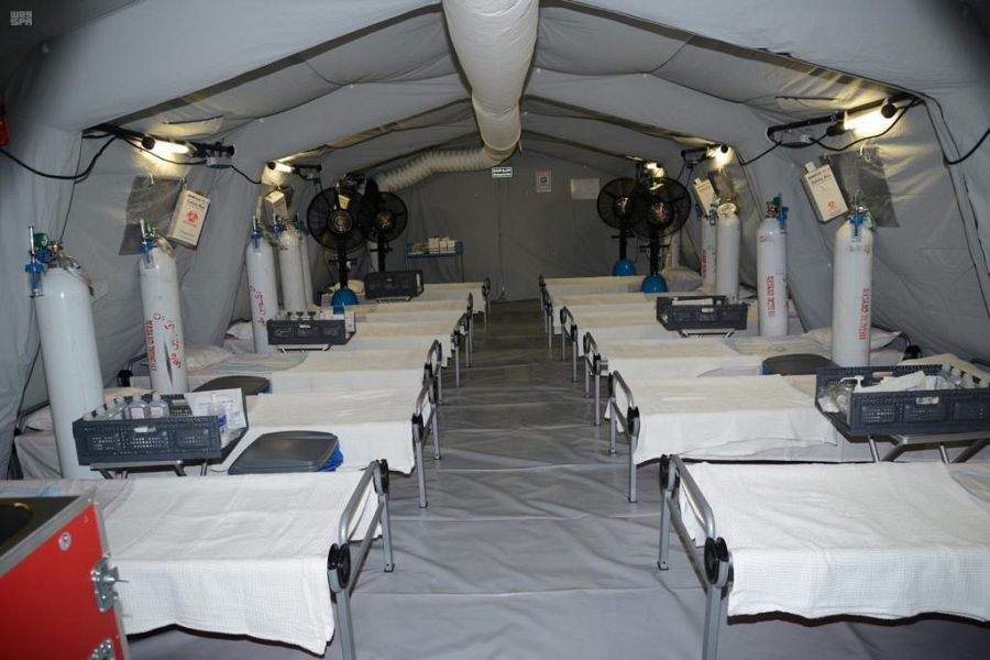 In line with the leadership's directives to harness all capabilities to safeguard the health of citizens and expatriates, the Ministry of Defense, represented by the General Department for Medical Services of the Armed Forces, has built two mobile hospitals with 100-bed capacity in Makkah to receive COVID19-infected patients.