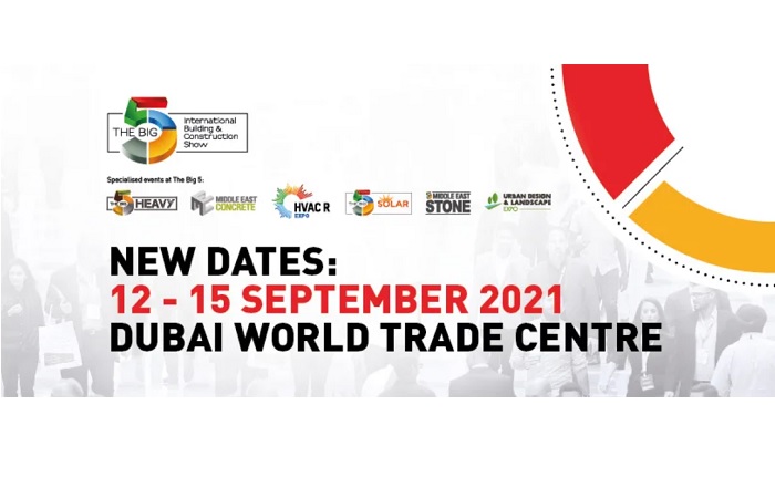 The next edition of The Big 5, The Big 5 Heavy, Middle East Concrete, HVAC R Expo, Middle East Stone, The Big 5 Solar, and the Urban Design & Landscape Summit will run from 12 to 15 September 2021, at the Dubai World Trade Centre in Dubai.