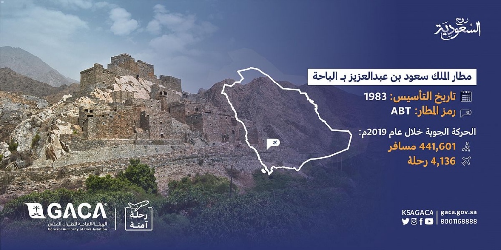 The General Authority for Civil Aviation (GACA) has provided a seating capacity for the southern airports with the aim of connecting all regions of the Kingdom of Saudi Arabia by air. This has contributed to meeting the growing demand for travel and for the development of tourism and economic movement in the southern region. The official statistics issued by GACA during the year 2019 were recorded in the tourist areas, in which the number of passengers traveling through Abha International Airport reached 4,368,153 passengers, while the number of flights reached 35,027 flights. The number of passengers at King Saud Airport in Al-Baha last year reached 441,601 passengers, while the number of flights reached 4,136 flight.