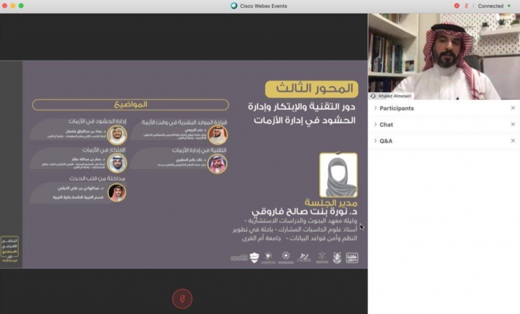 In addition, Umm Al-Qura was able to hold its major annual events virtually, using the conference platform capabilities of Webex Events. Over 3,000 participants attended Umm Al-Qura’s Annual Contest for Memorization of the Holy Quran, while the Crisis Management Forum brought together a number of high-level experts to discuss effective crisis management in different areas and industries.