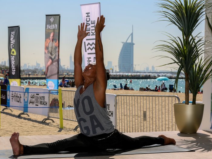 Sun, sea, sand and endless free activities got the crowds buzzing at the DP World Fitness Village Kite Beach – from intense HIIT workouts, bootcamps, dance classes, and family fun at the Aqua Park, to volleyball games and beach football kickabouts. New this year are exciting trampoline workouts at Fitbit Rebounder, with a resident instructor on hand at all times; as well as the dedicated DP World women’s fitness pavilion. As a special treat to celebrate the start of the fitness extravaganza, vibrant fireworks lit the beach on Friday evening.