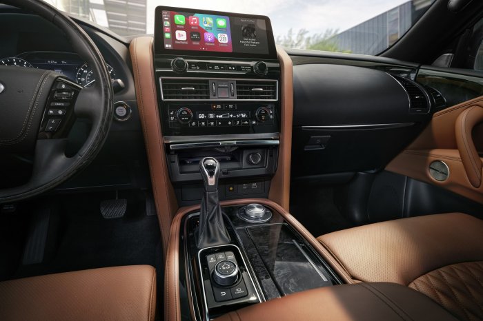 The 2022 QX80 also houses a 12.3-inch infotainment screen granting drivers access to the car’s full features at their fingertips, Apple CarPlay integration and an all-new wireless smartphone charger for hassle-free charging. This premium SUV also comes equipped with leather or semi-aniline appointed seats on all three rows, with the option of second-row captain’s chairs and climate-controlled front seats. The Bose® Performance Series Audio with 17 speakers, a 360-degree camera, lane assistance feature, forward collision mitigation, and an intelligent navigation system will more than empower the experience of driving the 2022 INFINITI QX80.