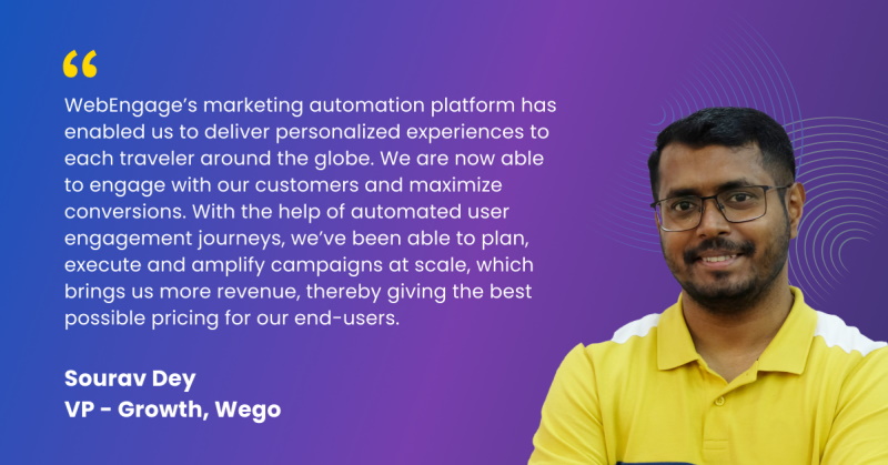“WebEngage’s marketing automation platform has enabled us to deliver personalized experiences to each traveller around the globe. We are now able to engage with our customers and maximize conversions. With the help of automated user engagement journeys, we’ve been able to plan, execute and amplify campaigns at scale, which brings us more revenue, thereby enabling us to give the best possible pricing to our end-users,” explained Sourav Dey, VP - Growth, Wego. As Sourav noted, Wego went on to register nearly 27,000 daily unique conversions through push notifications as email open rates increased 20 times.