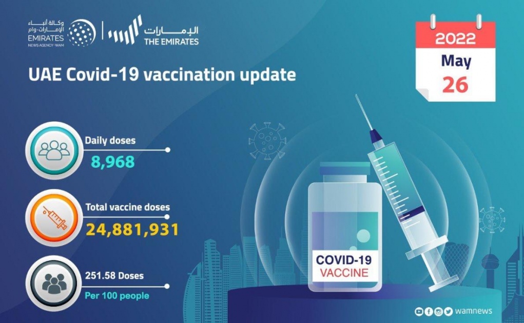 The Ministry of Health and Prevention (MoHAP) has announced that 8,968 doses of the COVID-19 vaccine were given in the past 24 hours.