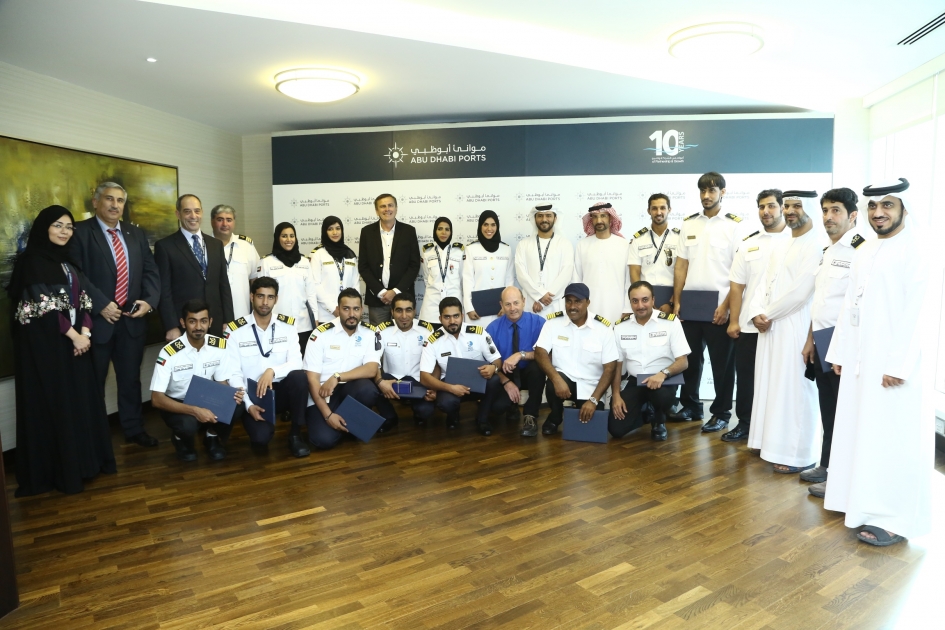 The ceremony, held at the headquarters of Abu Dhabi Ports, was attended by Captain Mohamed Juma Al Shamisi, CEO of Abu Dhabi Ports, Captain Jasim Al Khamiri, Manager of ADNOC Petroleum Ports Authority, Phillip Lenthall, Course Leader at the Australian Maritime College (AMC), and several senior managers and staff from Abu Dhabi Ports, and IRSHAD (Abu Dhabi Petroleum Ports Operating Company) an ADNOC Group company and National Marine Dredging Company (NMDC).