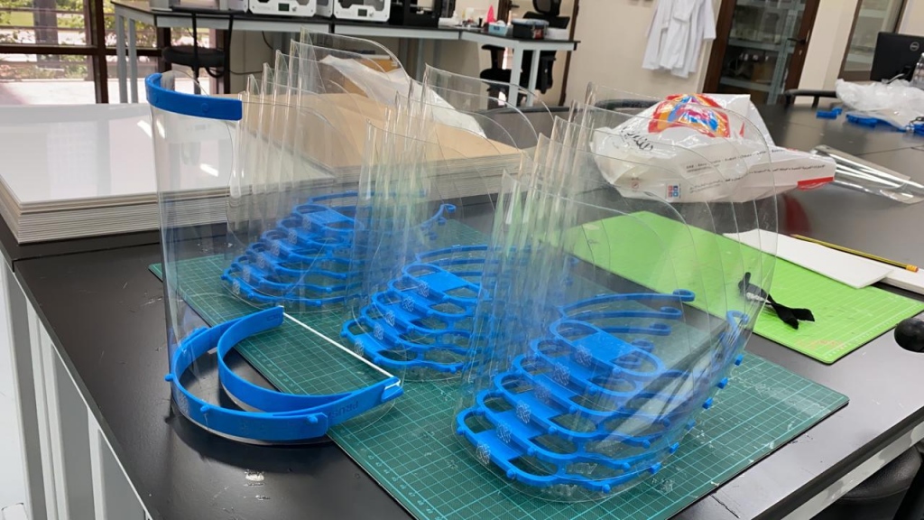 In May, Abu Dhabi University announced it successfully developed its first prototype of a face shield to be provided for hospitals and other healthcare facilities across the emirate. Its College of Engineering came up with a modified design for the face shield by laser cutting polyethylene material that is more comfortable for use for first responders. The final prototype took two days to create, including the initial blueprint design that was created by modifying an existing design in order to accommodate the comfort factor as well as the time required to manufacture and assemble the parts. Numerous trials were conducted prior to obtaining the final design for the shield. The team working on the project applies laser cutting techniques and is using 3D printers to create the face shields and clips.