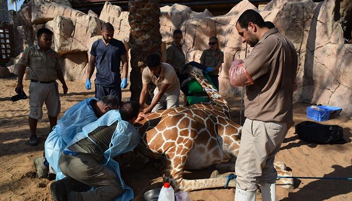 Al Ain Zoo’s expert Veterinary team rescues distressed Giraffe