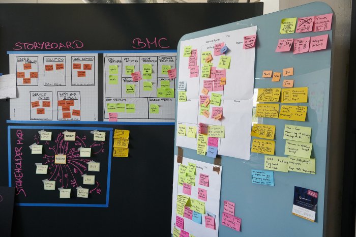 23 Audi employees in a co-working space in Berlin are developing business models that very rarely have anything to do with cars. Eight Audi employees who live in Berlin permanently are supported by 15 other employees visiting in six-month cycles. At the end of the cycle, these employees then return to their original positions and functions at the various company sites. It is the task of the cross-functional teams to implement a verified business model within these six months through customer-focused development and cooperation with start-ups.