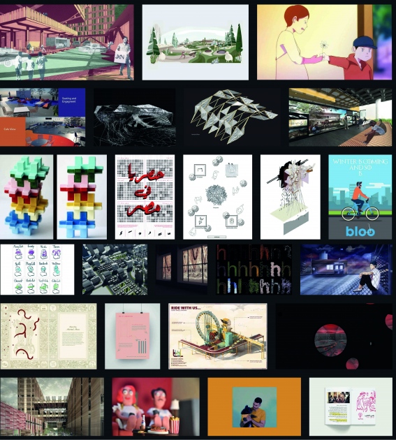 The works presented are diverse, ranging from architectural models and renders, spatial design, master urban plans, brand identity, information graphics, posters, brochures, products, games, web design, motion graphics, films, animation, service and experience design.