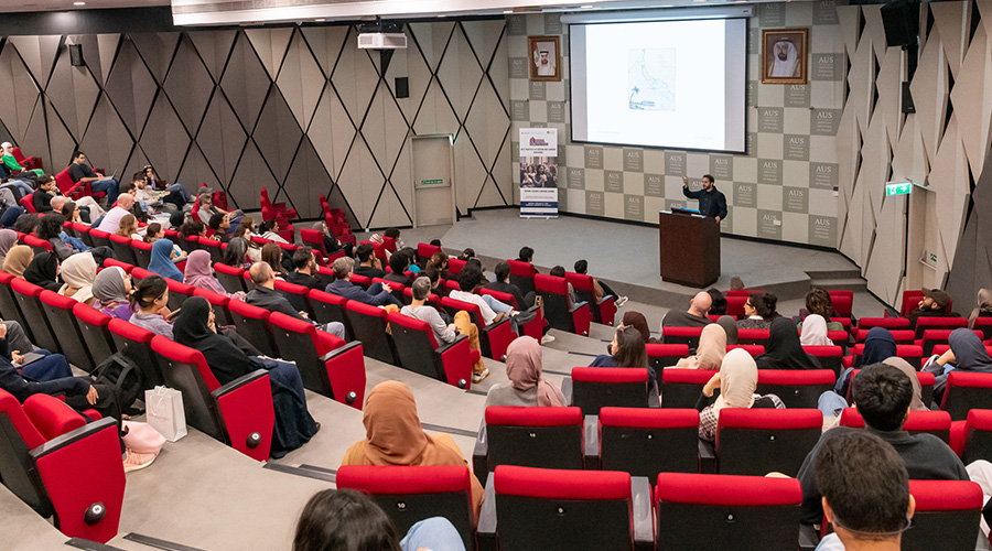 Joined by members of his research team—all of whom graduated from AUS—Tabbarah outlined how the exhibition challenged perceptions of aridity by exploring the untapped potential of arid environments as spaces of abundance, showcasing cutting-edge architectural possibilities within the UAE's desert plateau, wadis, and coastal plains.