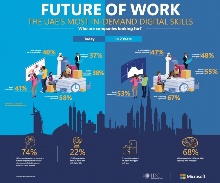 UAE organizations are experiencing increased demand for individuals with deep technology skills, according to a new research by the International Data Corporation (IDC). The research commissioned by Microsoft titled ‘Future of Work Skills’ and covers findings from key markets across the Middle East and Africa to examine insights, trends and challenges that the region is facing amidst its digital transformation journey.