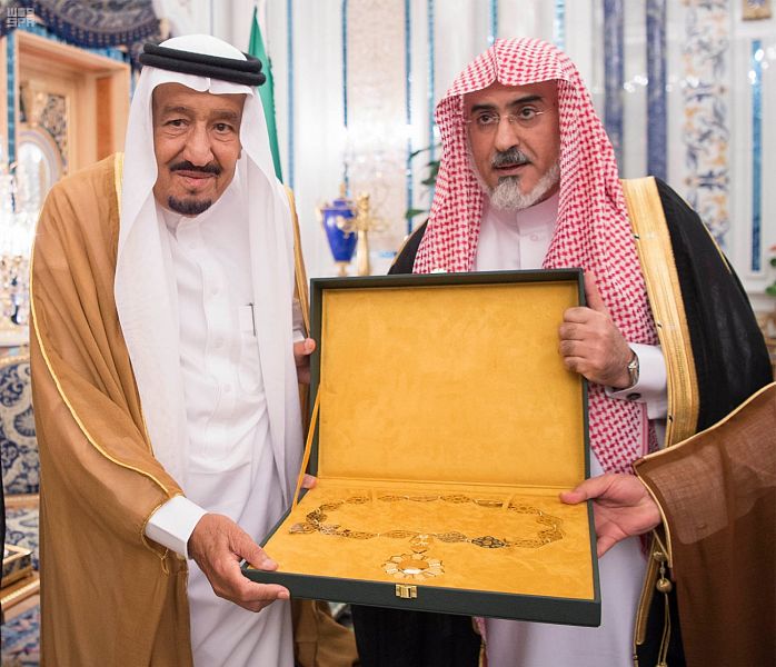 The degree was handed over to the King by the University s Director and Member of Senior Scholars Council Sheikh Dr. Sulaiman bin Abdullah Aba Al-Khail when the King received him and the accompanying delegation of the University at Al-Salam Palace in Jeddah today.