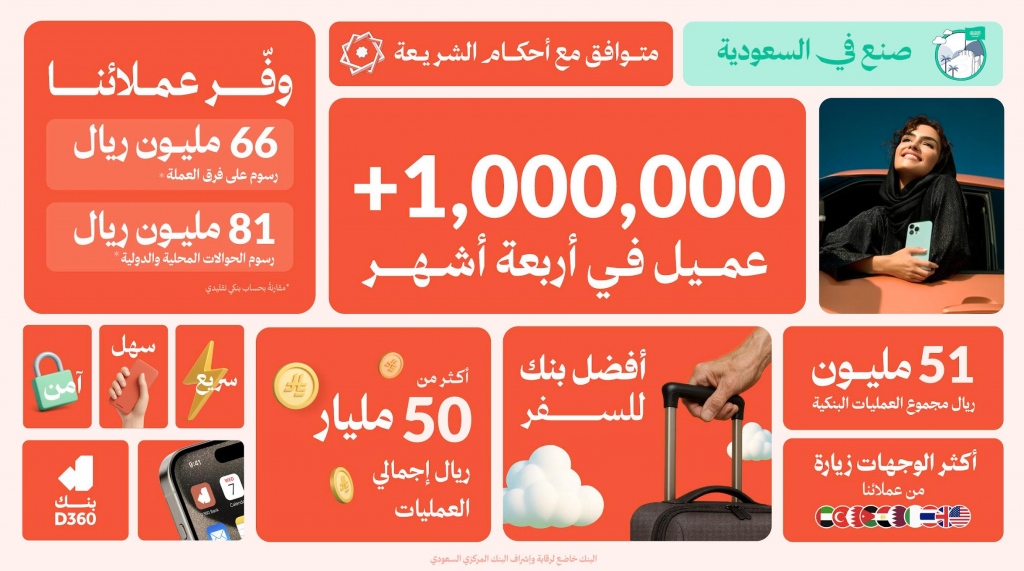 D360 Bank, the innovative Saudi Shariah-compliant digital bank, has announced that it has reached more than one million customers within the first four months of its official launch, setting a new global benchmark in digital banking adoption. This milestone underscores the growing demand for seamless and secure digital financial solutions in Saudi Arabia.