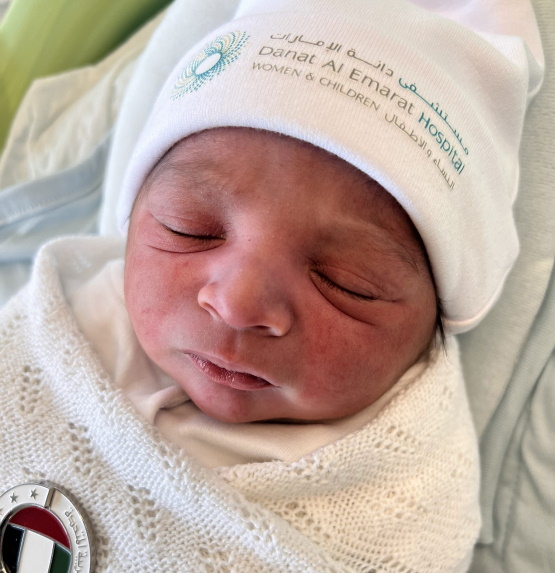The first newborn was delivered at 1:39 am. The father of the newborn, from the Alhashimi family, was overwhelmed with joy and said: “We’ve decided to name our beautiful son Khalifa. We are delighted and utterly blessed that he has arrived on this special day. We thank God that Khalifa and his mother are in good health. We wish everyone a happy and joyous 51st UAE National Day! I would also like to thank all the caregivers of Danat Al Emarat Hospital who provided care to my wife and child.”