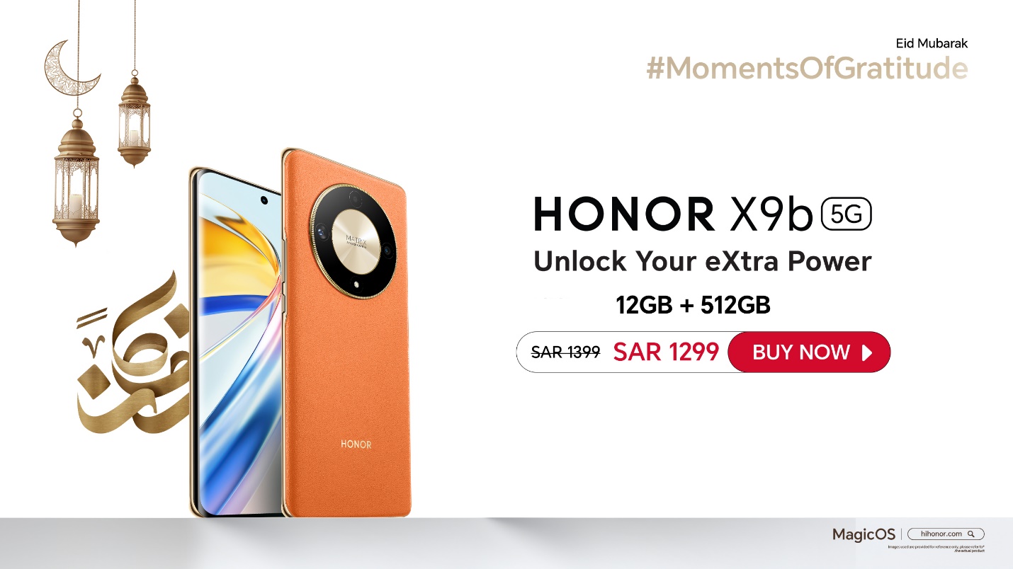 HONOR X9b with a special price of SAR 1299 instead of SAR 1399 during Eid offers.