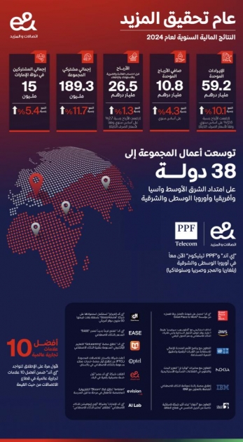 Hatem Dowidar, Group Chief Executive Officer, e&, added: “In 2024, we accelerated our transformative journey as a Global Technology Group—scaling AI, expanding into Europe, and driving impact across three continents. Our consolidated revenues surpassed AED 59.2 billion, growing by 10.1 percent year-over-year, while consolidated EBITDA rose 2.7 percent in constant currency to AED 26.5 billion. Our financial performance reflects the trust we’ve built, the bold investments we’ve made, and the transformative added value we continue to create. A landmark achievement was e&’s expansion into Central and Eastern Europe with the majority acquisition of PPF Telecom’s assets, adding over 10 million new subscribers across Bulgaria, Hungary, Serbia, and Slovakia. This move strengthens our global presence, unlocks scalable digital solutions, and fosters digital inclusion. Additionally, our acquisition of GlassHouse expanded our cloud, data, and SAP capabilities across Türkiye, South Africa, and Qatar, strengthening our leadership in enterprise digital transformation.