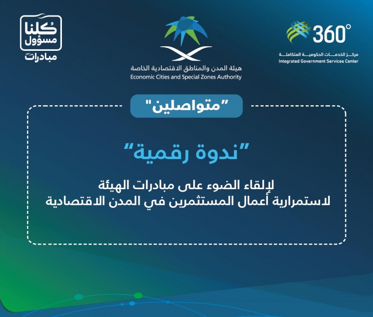 The Economic Cities and Special Zones Authority (ECZA) organized a web conference for investors to introduce the initiatives that were recently launched through the Integrated Government Services Center (360°) to support business continuity and mitigate the economic impact of the COVID-19 pandemic. The web conference is part of the ‘Connected’ campaign, which has been launched by ECZA to ensure effective communication between Economic City investors and the 360° team across a range of platforms.