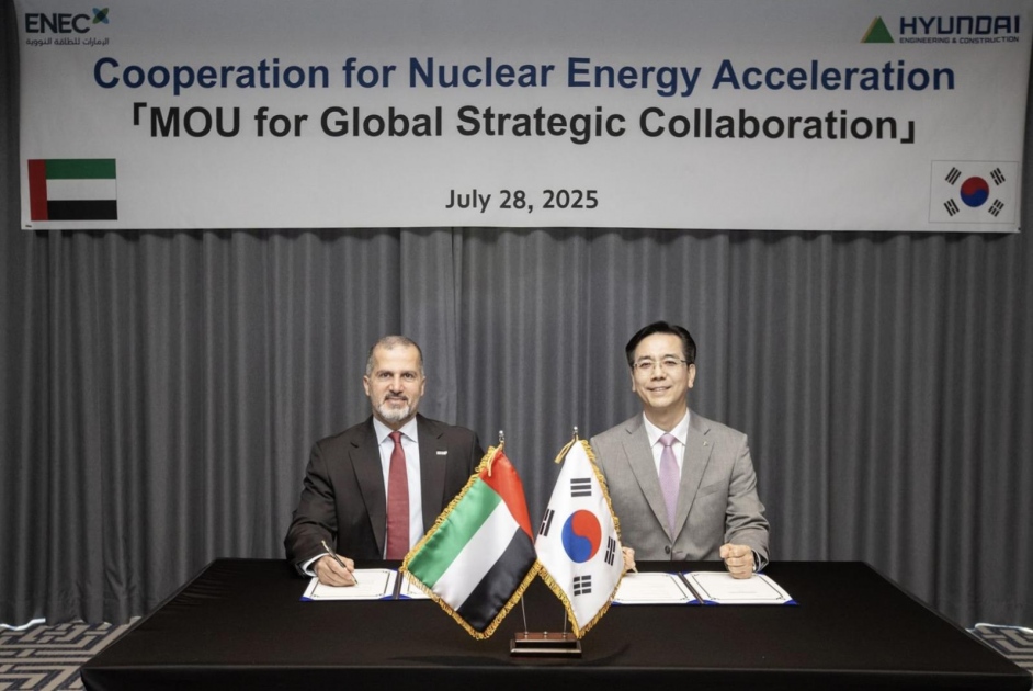 The Emirates Nuclear Energy Company (ENEC) and Hyundai Engineering & Construction (Hyundai E&C) today signed a strategic Memorandum of Understanding (MoU) in Seoul, Republic of Korea, to jointly explore international nuclear energy opportunities.