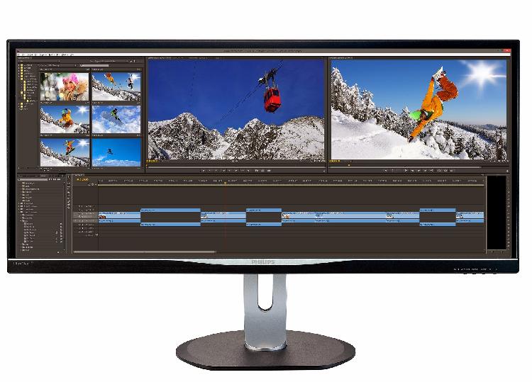 Moreover, one large display can replace a dual-monitor configuration which is today commonly used for data-intensive applications, e.g. in finance. A screen with 34 inches with a 21:9 ratio is equivalent in terms of information focus to two 24-inch screens, but with the advantage of occupying less space on the desk, saving power, and eliminating the distracting gap between two screens. By now, there are also such monitors which enable parallel viewing of two streams from separate devices, e.g. the Philips BDM3470UP.