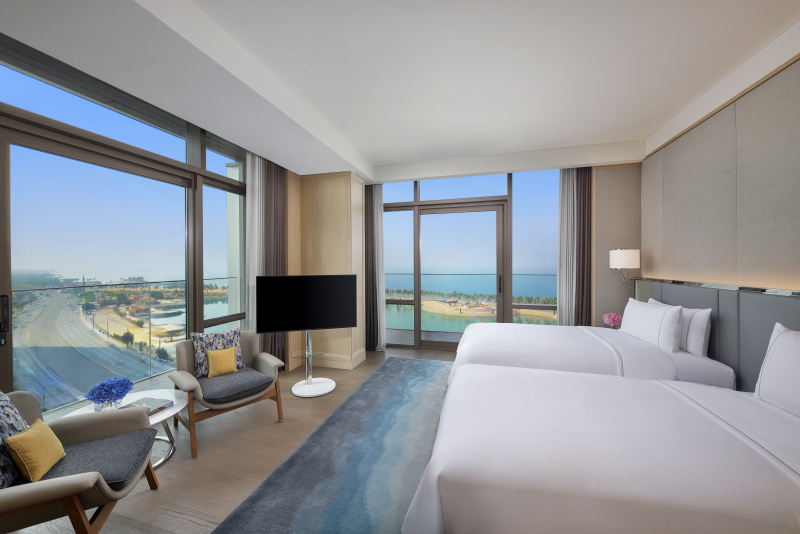 Shangri-La Jeddah’s Deluxe Sea View Room redefines spacious elegance, perfect for relaxing weekends away, or a once-in-a-lifetime honeymoon. The space is surrounded by splendid views of the endless blue of the Red Sea, enhanced with floor-to-ceiling windows that flood the space with natural light, and stylish interiors mirroring the endless blue or the sea and sandy beaches outdoors.