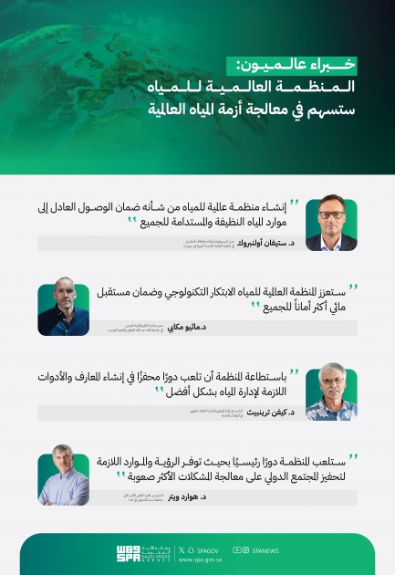 Commenting on the recent Saudi initiative, Dr. Stefan Uhlenbrook, Director of Hydrology, Water and Cryosphere at the World Meteorological Organization in Geneva, Switzerland said: “Amidst a backdrop of rapidly shifting global dynamics and the profound impact of climate change on the hydrological cycle, there is an urgent need to delve deeper into comprehending hydrological processes at various scales. This is fundamental to manage our precious water resources sustainably. I commend the visionary initiative put forth by His Royal Highness the Crown Prince of Saudi Arabia to establish a Global Water Organization. This will be critical to secure equitable access to clean, sustainable water resources for all. The organization's core mission should revolve around bolstering observational and modelling systems, enabling us to better understand the ever-evolving state of our water resources. By factoring in the complex interplay of societal and environmental changes, these systems will empower us to make informed predictions about the future of our water resources in a changing climate.”