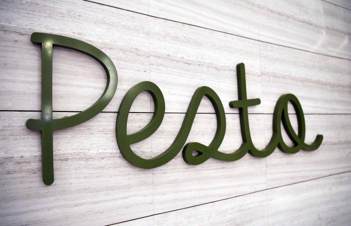 Pesto’s homely ambience is accessorized by patterned floors, wooden accents, family style seating, and dining areas. The open kitchen dominates the space, allowing the chefs to greet guests at the table and plan their personal culinary journey. For those looking for a more intimate experience, Pesto provides semi-private dining areas as part of their 80-person seating capacity.