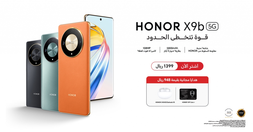 The HONOR X9b 5G is available now for purchase in the KSA via Jarir Bookstore, eXtra, STC, Zain, LuLu, noon, Amazon and retail shops at an exciting price of SAR 1399. Upon purchase, consumers will get free gifts worth SAR 948, including HONOR TWS X5 and HONOR VIP Care+.