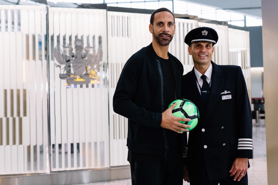 Prior to Ferdinand’s flight to Dubai, Rio and British Airways Captain Rick Basnett enjoyed a friendly kickabout outside British Airways’ First Wing at Terminal 5 in London Heathrow, with Ferdinand displaying some of the deft touches that saw the London-born centre-half earn 81 England caps.