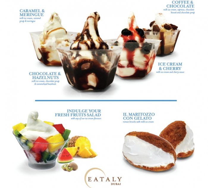 DUBAI April 13th Eataly introduces Làit Gelato’s new Summer flavours: Chocolate&Hazelnuts, Coffee&Chocolate, Caramel&Meringue, Milk Icecream&Cherry, the Fresh Fruit Salad with icecream and the traditional Maritozzo con Gelato.
