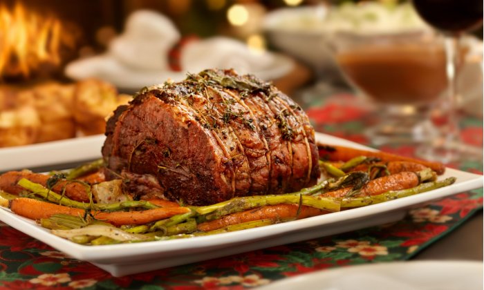 A wide array of festive roasts and barbecues, Christmas logs and chocolate fountain