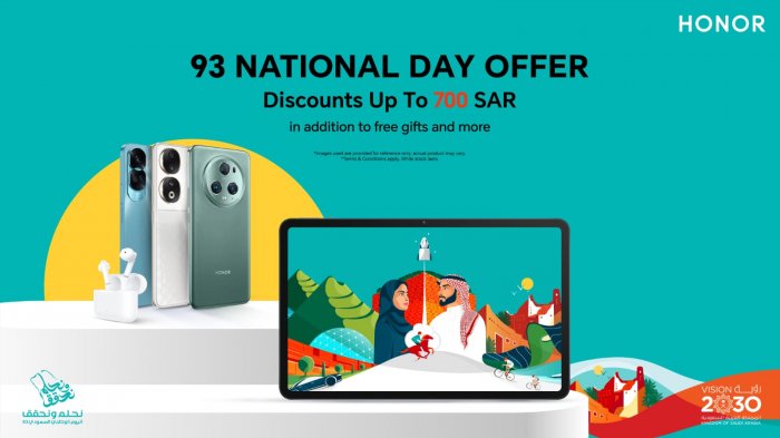 In honor of the 93rd Saudi National Day, HONOR, the global technology brand, is delighted to join in the festivities by extending exclusive offers across its advanced range of digital products with up to SAR 700 off. This celebration presents a remarkable opportunity for consumers to elevate their smart portfolios with the latest and most innovative HONOR products including smartphones tablets and more.