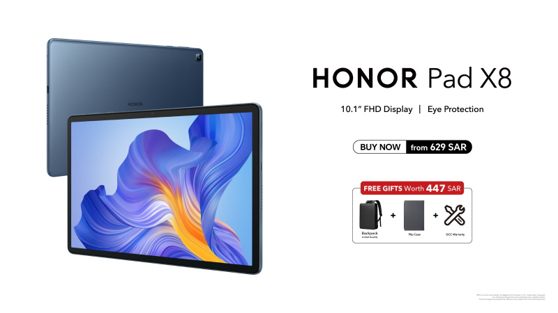 HONOR Pad X8 is now available in the KSA markets at a price of SAR 629 for (3GB+32GB) version and SAR 699 for (4GB+64GB) version through Jarir Bookstore, extra and other retail shops. Upon purchase, consumers will get free gifts worth SAR 447 including Backpack, case and GCC warranty.