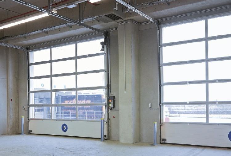 APU 67 Thermo, depth 67 mm, provides excellent thermal insulation with a U-value of up to 1.5 W/(m²·K) for a door size of 5 × 5 m, thanks to its glazing beads and steel bottom sections with thermal break. Large glazing also allow more light in the workspace.