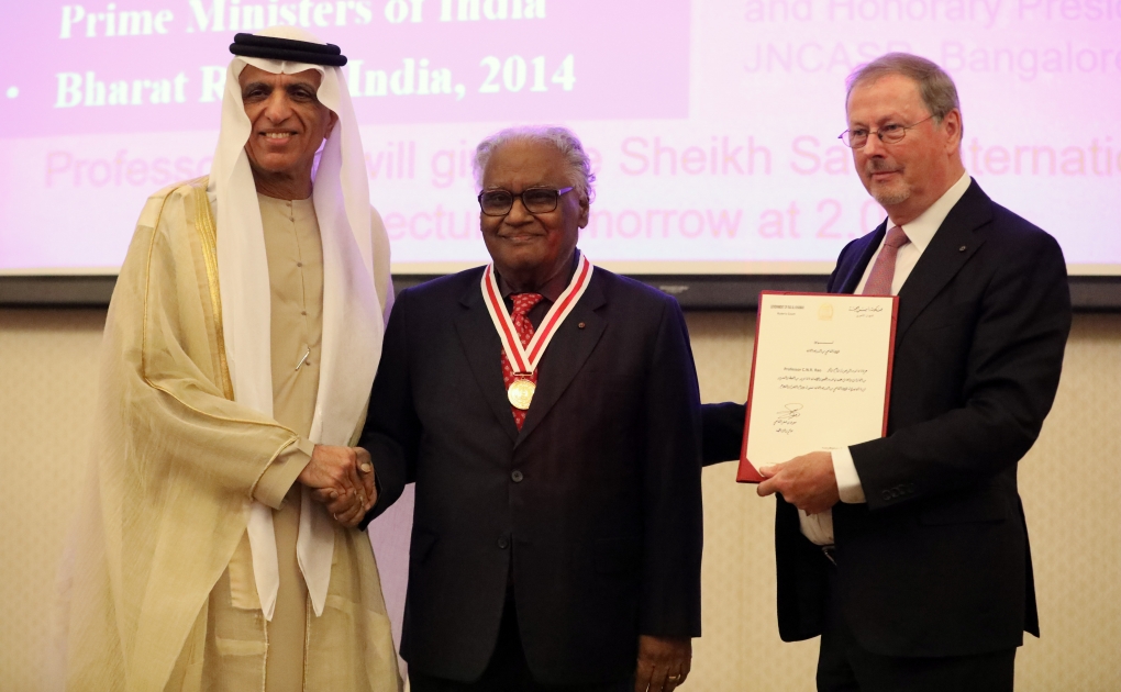 Professor Rao, who won the biennial US$100,000 Sheikh Saud bin Saqr Al Qasimi International Prize for Materials Science, has published more than 50 books, written more than 1,600 scientific papers and received the Bharat Ratna, India’s highest civilian award, in 2014 for his contributions to science.