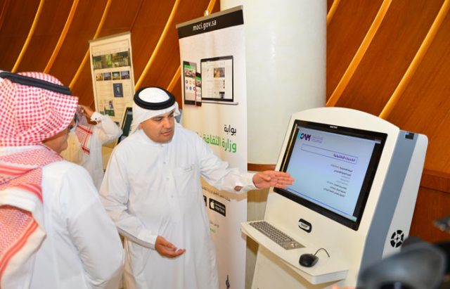 Minister of Culture and Information Adel Al-Turaifi launches the electronic services of the ministry at the Media Center of Saudi Press Agency in Riyadh on Sunday.