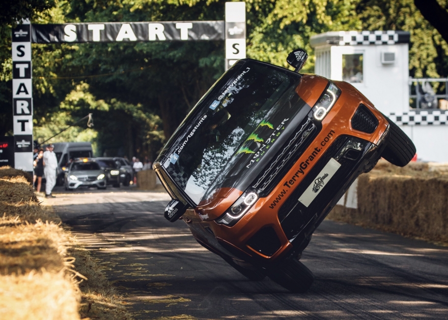 Terry Grant flipped the Range Rover Sport SVR up on to two wheels with the use of a ramp, before hitting speeds of up 60mph on Goodwood’s famous hillclimb as he set the new Guinness World Record time.