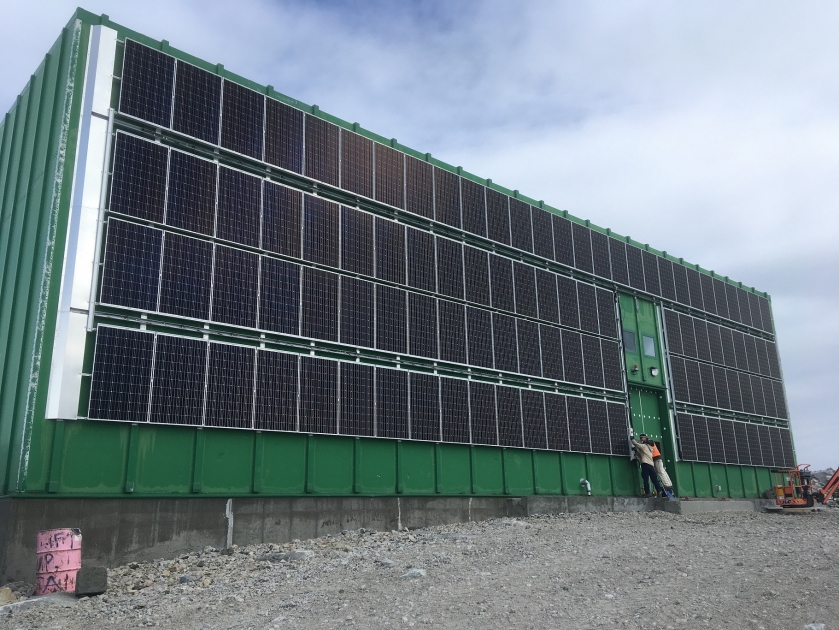 The solar PV panels were shipped from Germany to Hobart, Tasmania, and from there to Casey by the Aurora Australis in December 2018. After extensive simulations conducted by Masdar and the technical team at Casey, it was decided that the solar panels would be mounted in a vertical position on the northern façade of Casey’s “green store” building.