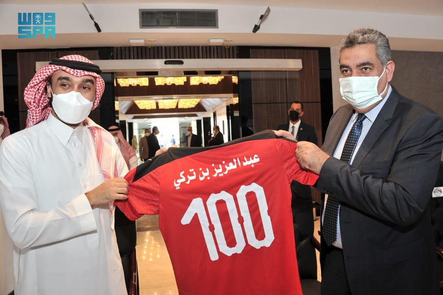 Dr. Sobhi accompanied Prince Abdulaziz bin Turki, and the Nigerian Minister of Youth and Sports, on a get-acquainted tour of the halls complex in the presence of a member of the Executive Office of the FIFA and Union of Arab Football Associations, Hani Abu Raida, and a number of Arab officials participating in the tournament as well as the Saudi minister's accompanying delegation.