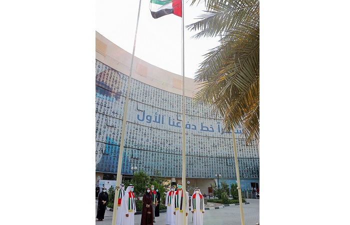 The ceremony was held in response to the call of His Highness Sheikh Mohammed bin Rashid Al Maktoum, Vice President and Prime Minister of UAE and Ruler of Dubai, to all institutions, ministries, bodies and schools celebrate the Flag Day on November 3, an event that coincides with the anniversary of President Highness Sheikh Khalifa bin Zayed Al Nahyan’s assumption of office.