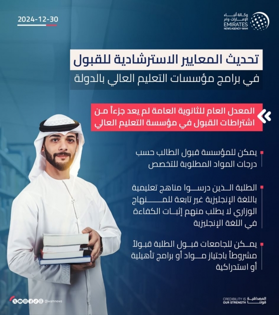 The Ministry of Higher Education and Scientific Research (MoHESR) has issued Ministerial Resolution No. (19) of 2024 outlining admission criteria for programmes offered by UAE-based higher education institutions (HEIs).